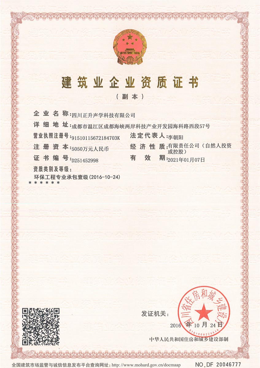 正處在快速發(fā)展期的正升聲學(xué)公司,經(jīng)營(yíng)范圍不斷擴(kuò)展,工程業(yè)績(jī)不斷提高。為促進(jìn)公司經(jīng)營(yíng)業(yè)務(wù)拓展范圍,提高企業(yè)綜合競(jìng)爭(zhēng)力和認(rèn)可度,公司從2015年開(kāi)始積極籌備環(huán)保工程專(zhuān)業(yè)承包一級(jí)資質(zhì)的申報(bào)工作。按照住房和城鄉(xiāng)建設(shè)部令第22號(hào)《建筑業(yè)企業(yè)資質(zhì)管理規(guī)定》的要求,公司于2016年完成環(huán)保工程專(zhuān)業(yè)承包一級(jí)資質(zhì)申請(qǐng)材料的編制,并向四川省住房和城鄉(xiāng)建設(shè)廳予以報(bào)送。