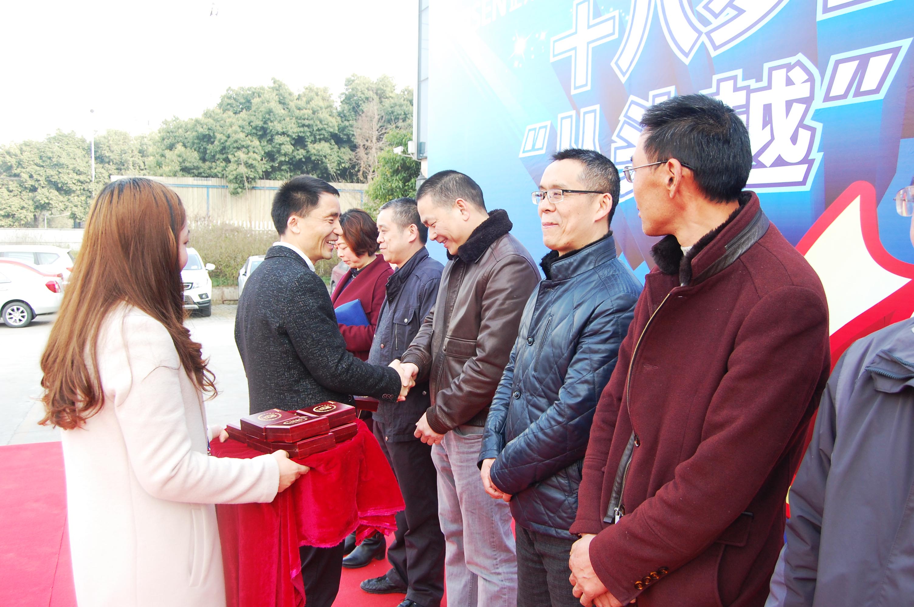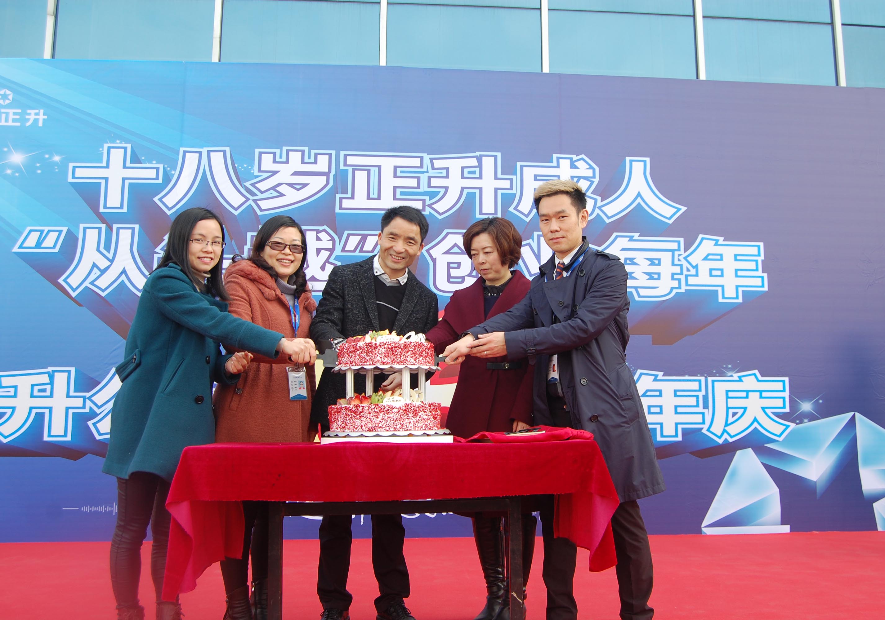 最后,公司正式啟動2017年度“進步每一點、精彩每一周”的年度企業(yè)文化宣傳活動,并隆重為剛剛成立的正升跑團、籃球隊、足球隊、乒乓球隊授旗,拉開了年度文化踐行的序幕。在現(xiàn)場熱烈的掌聲中,李董事長與管理者代表、新員工代表、老員工代表一起共同切開了正升十八周年慶蛋糕。