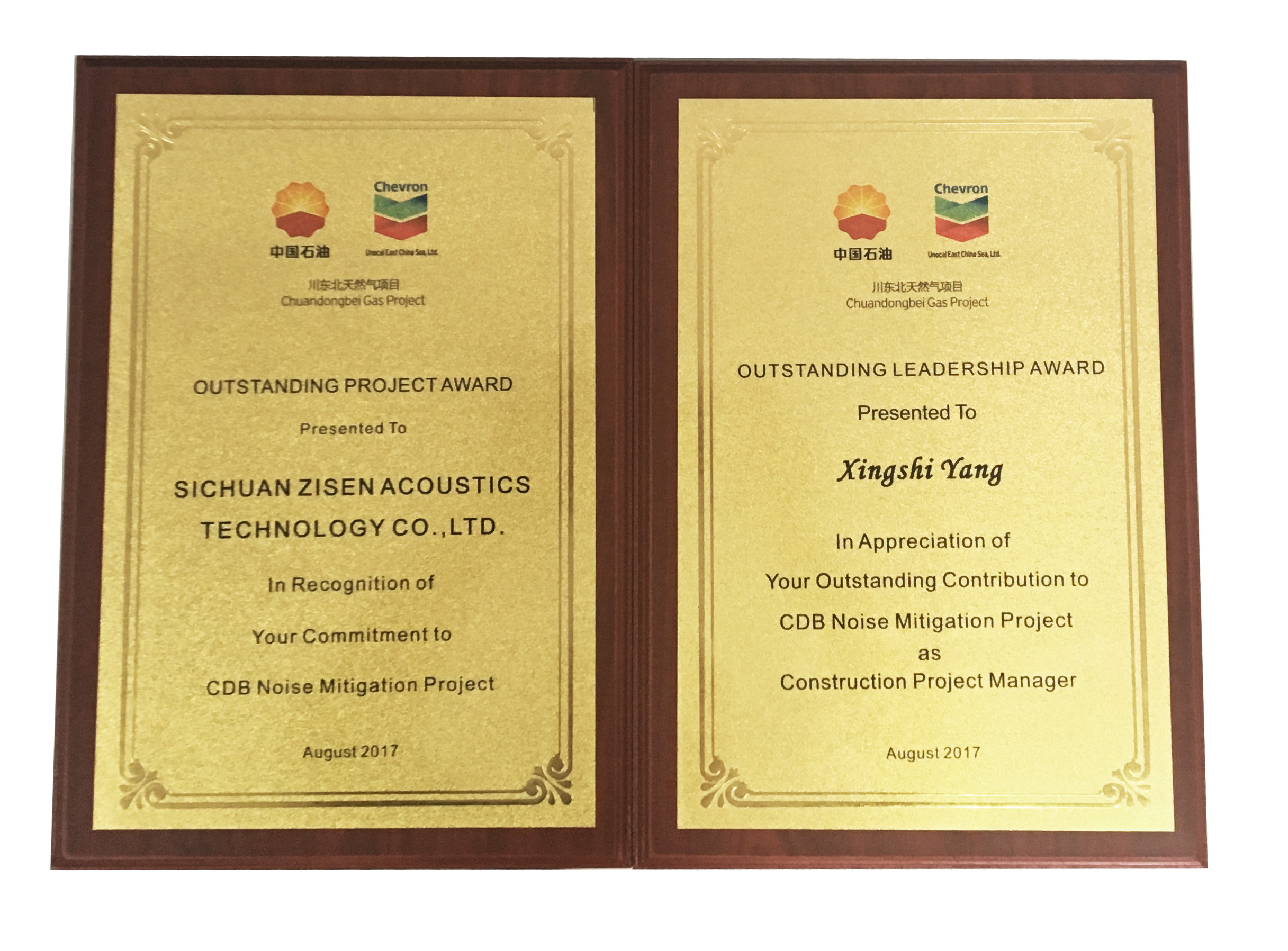 本月,雪佛龍公司在川東北天然氣項(xiàng)目所在地舉辦了川東北天然氣凈化廠(chǎng)降噪工程的頒獎(jiǎng)儀式,為正升公司頒發(fā)“杰出工程獎(jiǎng)”。同時(shí)也為降噪工程的項(xiàng)目經(jīng)理?xiàng)钆d仕頒發(fā)“杰出領(lǐng)導(dǎo)獎(jiǎng)”。