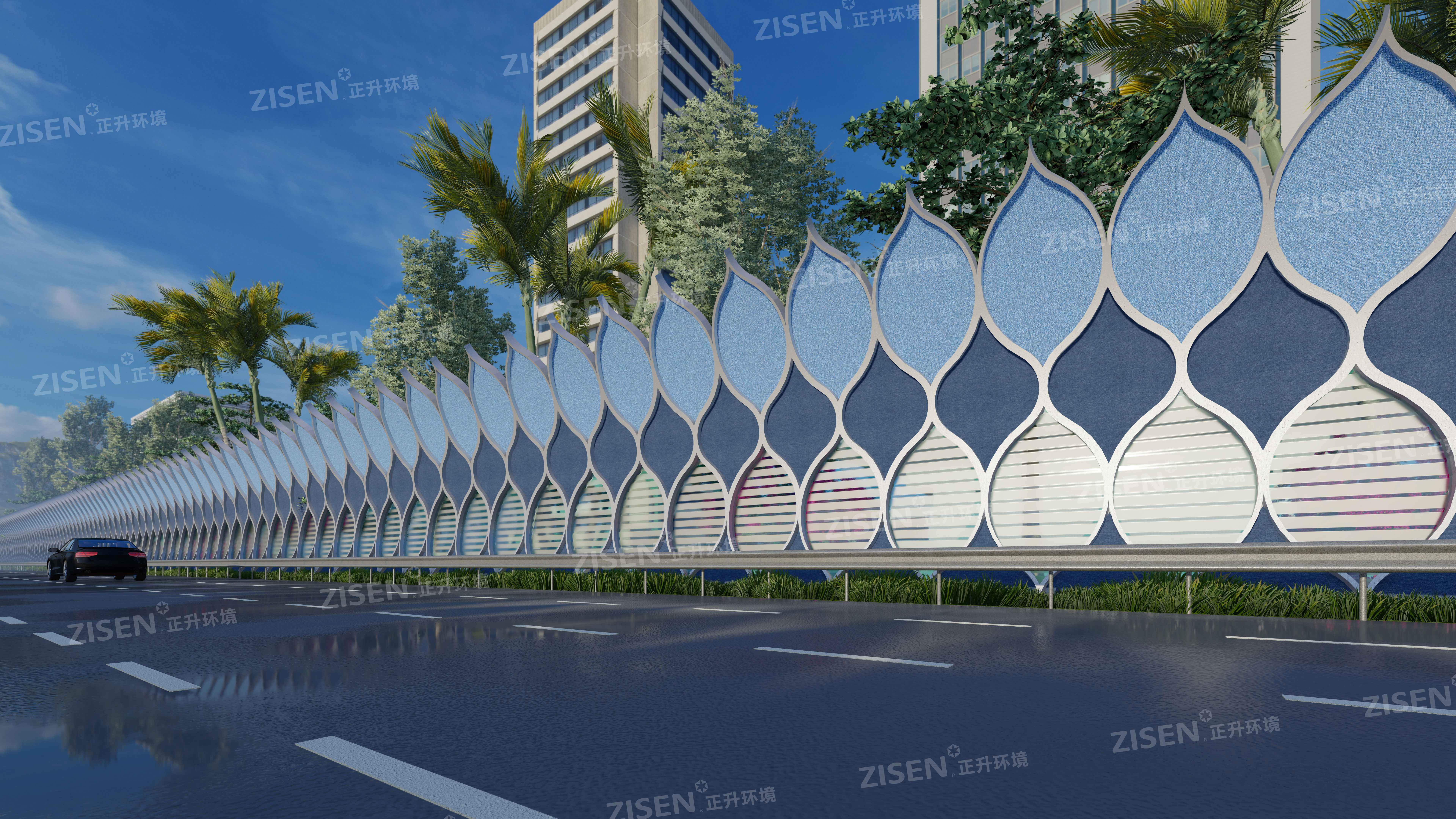 我們渴望從視覺上弱化聲屏障的固有形象,從聽覺上凈化交通噪聲的叨擾,將聲屏障和諧自然地融入環(huán)境,安靜和諧不突兀。